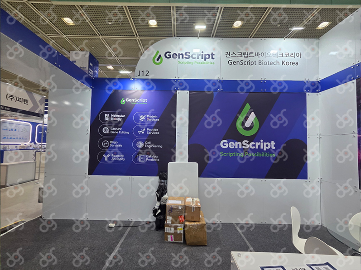‘GenScript’ 부스입니다. 이는 ‘CA BIOENGINE’과 마찬가지로 정해진 규격의 ‘조립식 부스(시스템 부스)’입니다. 이 부스의 기술적 핵심은 ‘포맥스 실사출력’입니다.