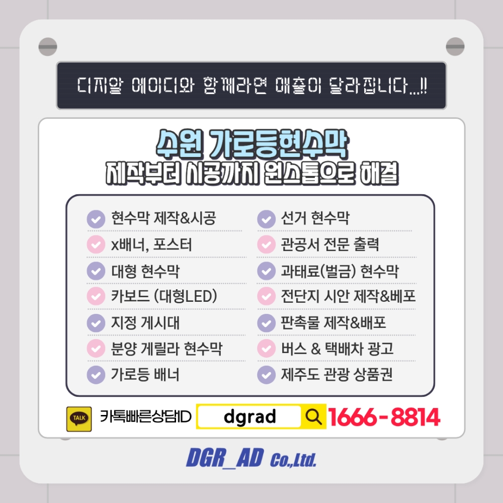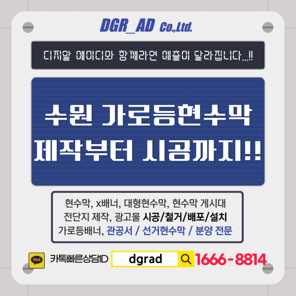 ‘수원 가로등현수막 제작부터 시공까지!!’라는 문구는 축제 홍보의 핵심을 찌릅니다. 가로등 배너는 수백, 수천 장이 동시에 설치되어야 하는 대규모 작업입니다.