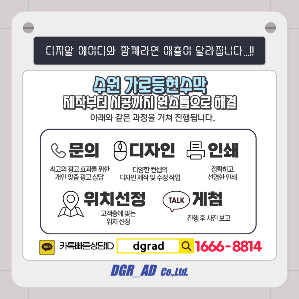유도하는 ‘판촉물’ 등 모든 옥외광고를 한곳에서 통일감 있게 제작할 수 있어야