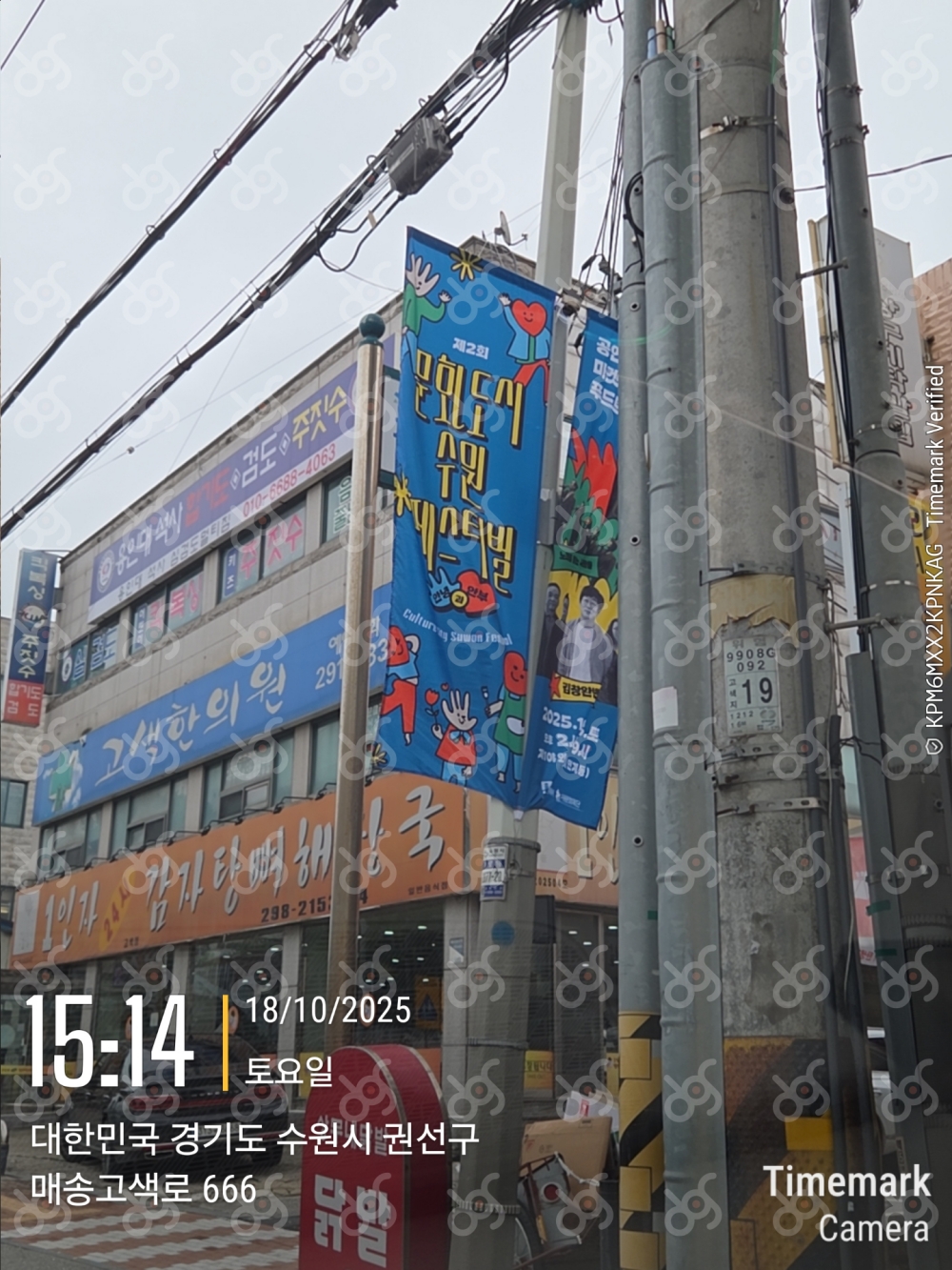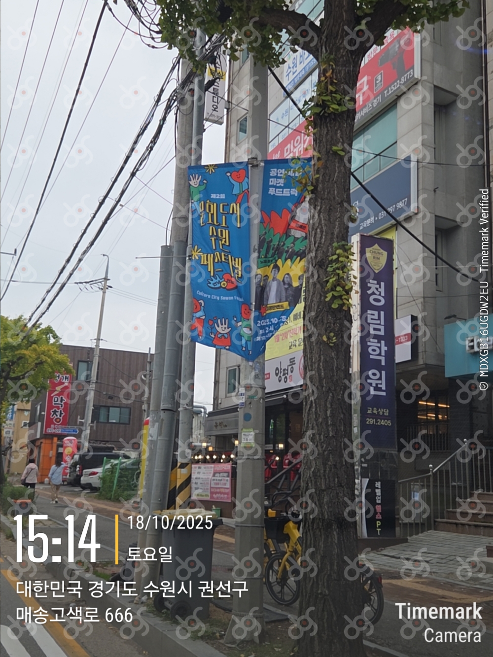 수원시 권선구 매송고색로 666. ‘제2회 문화도시 수원 페스티벌’ 가로등 배너가