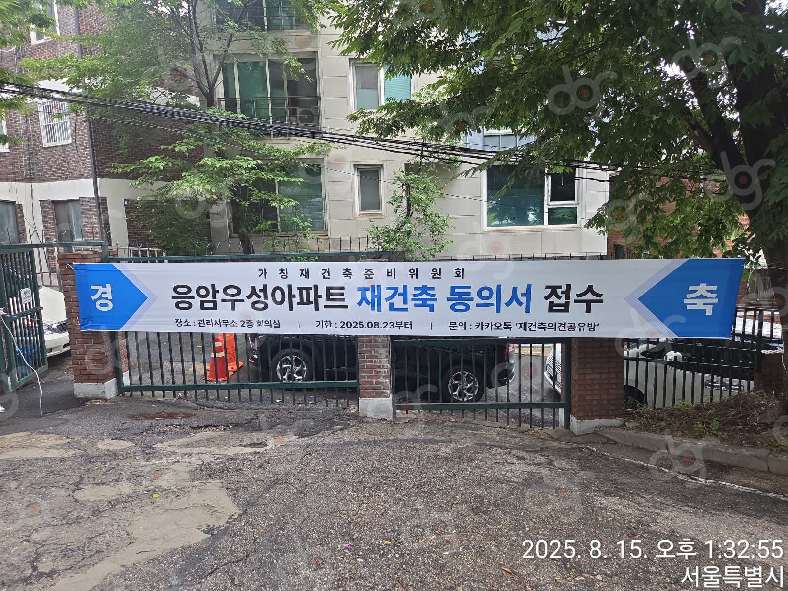얼마 전 진행된 ‘응암우성아파트 재건축 동의서 접수’ 현수막 시공이 대표적인 예입니다.
