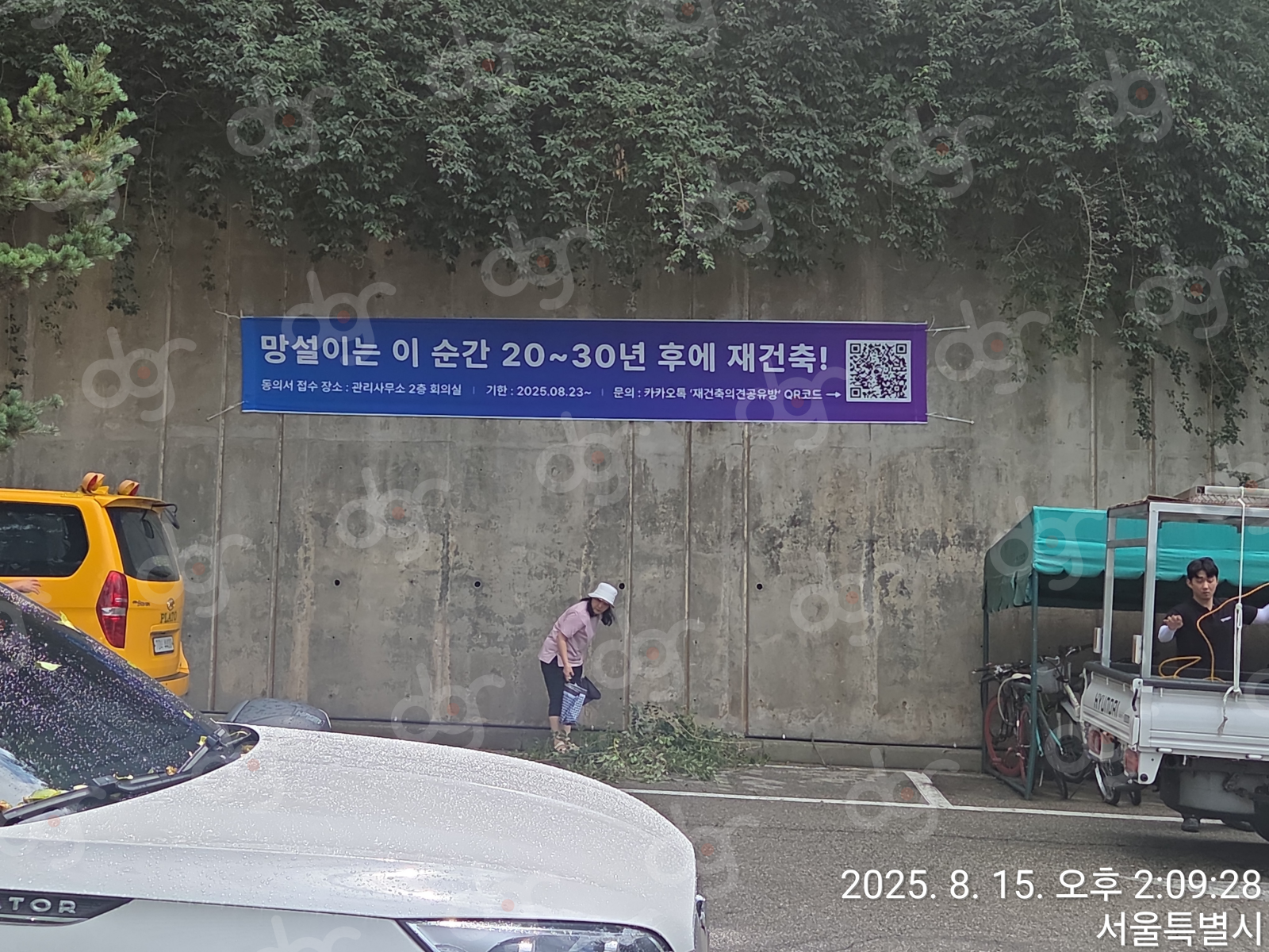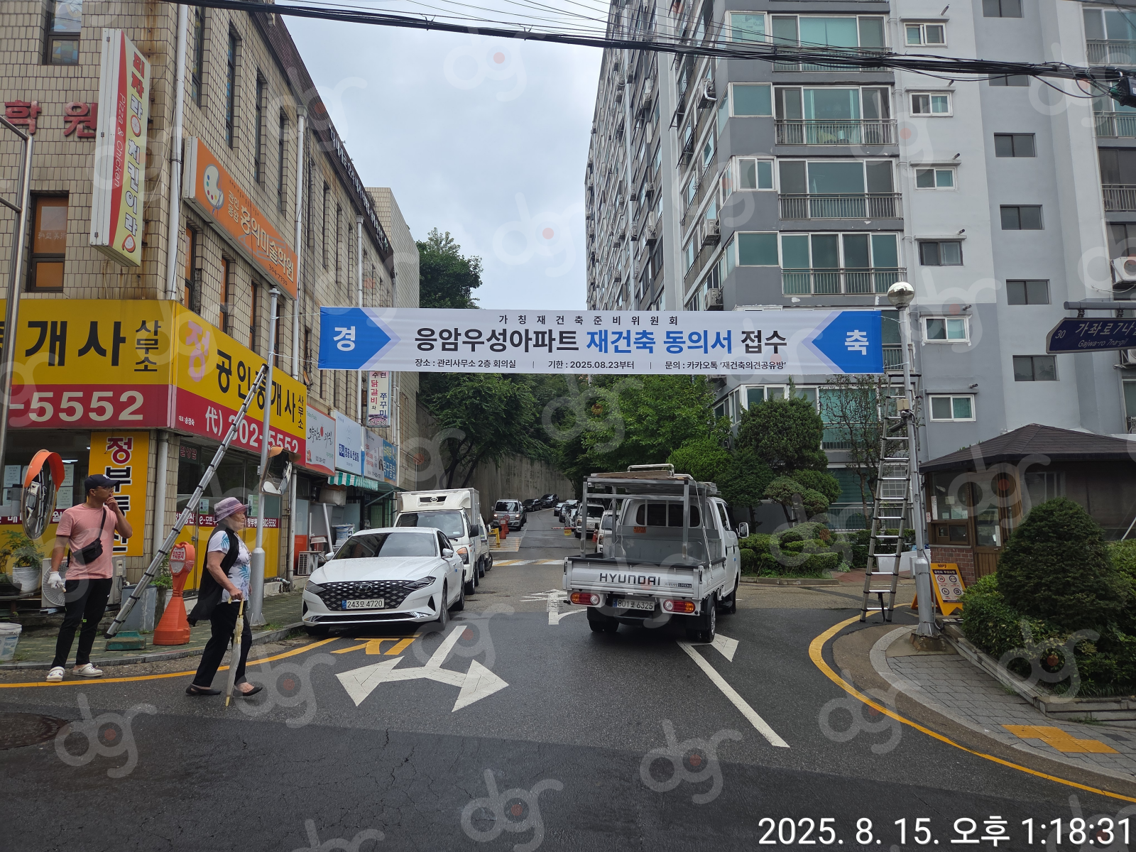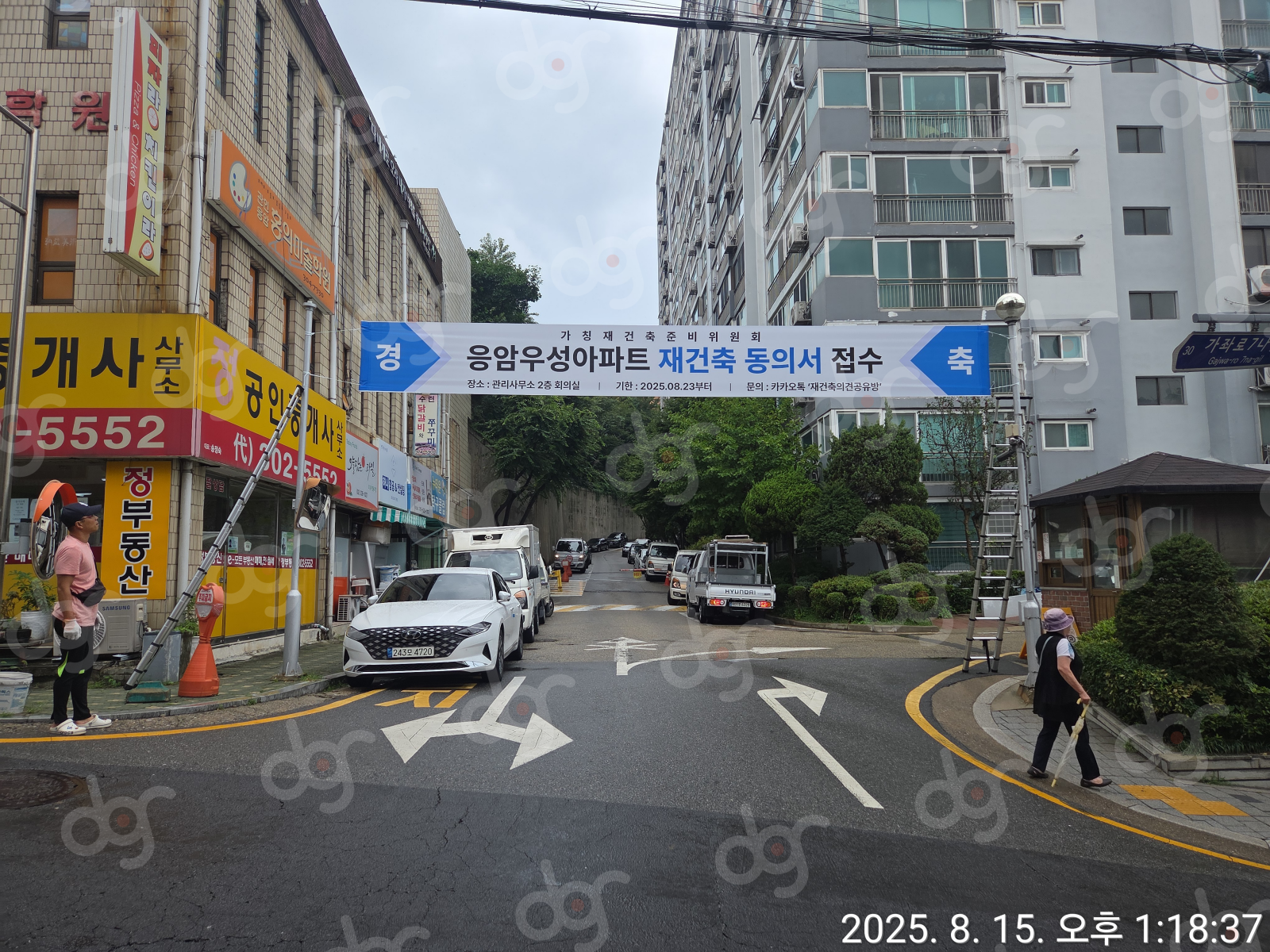얼마 전 진행된 ‘응암우성아파트 재건축 동의서 접수’ 현수막 시공이 대표적인 예입니다.